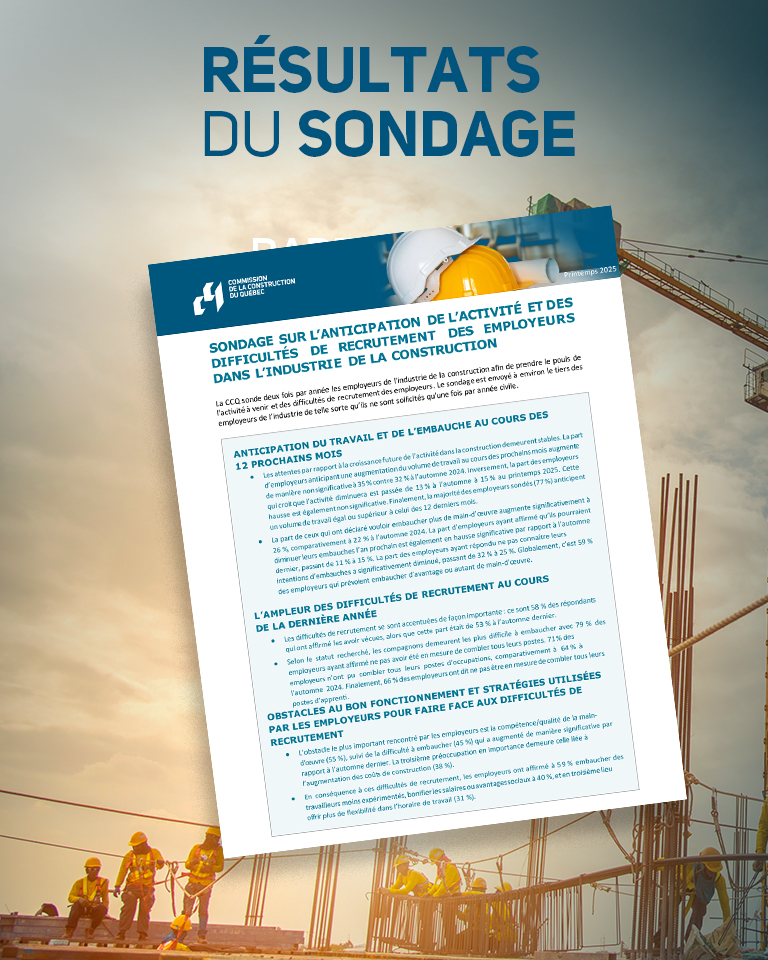 Each year, the Commission de la construction du Québec (CCQ), in collaboration with the employer and union associations of the construction industry, contributes to enhancing workers’ knowledge and developing their expertise through the Fiers et compétents program.
