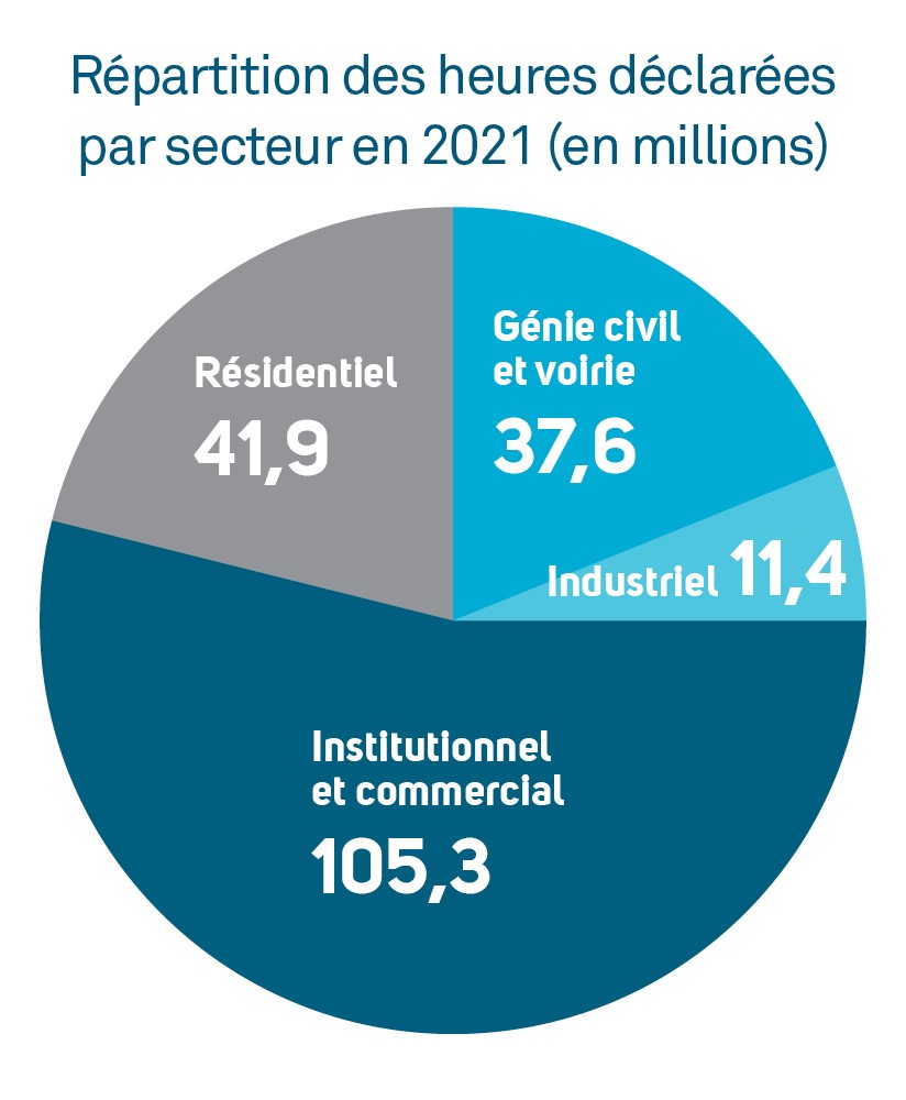 En 2021, 196,2 millions d’heures ont été déclarées dans l’industrie, soit une hausse de 20,8 % par rapport à 2020.
