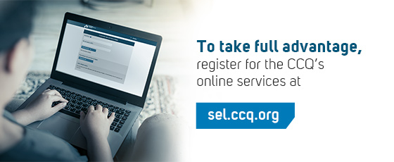- Register for the CCQ online services (if you haven’t done so already) at sel.ccq.org.
